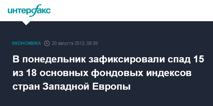 В понедельник зафиксировали спад 15 из 18 основных фондовых индексов стран Западной Европы