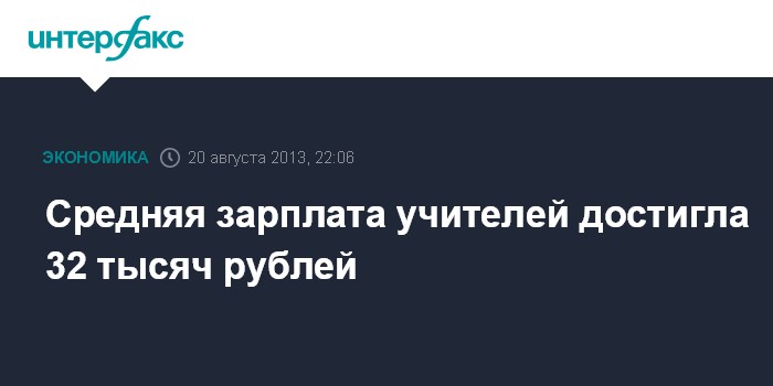 Москва. 20 августа. INTERFAX.RU - Средняя зарплата школьных учителей по России выросла во втором квартале этого года более чем на четверть, достигнув 32 тыс. рублей.