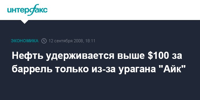 Нефть удерживается выше $100 за баррель только из-за урагана "Айк"