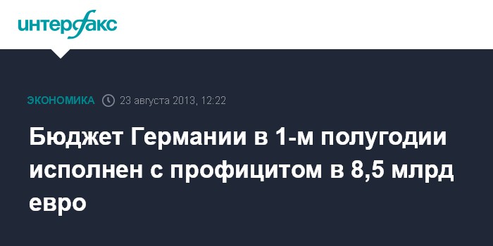 23 августа. FINMARKET.RU - В 1-м полугодии 2013 года профицит государственного бюджета Германии составил 8,5 млрд евро, или 0,6% ВВП, свидетельствуют данные Федерального статистического агентства ФРГ (Destatis).
