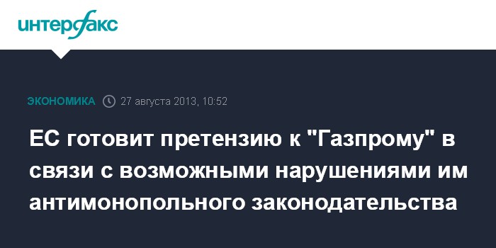ЕС готовит претензию к "Газпрому" в связи с возможными нарушениями им антимонопольного законодательства