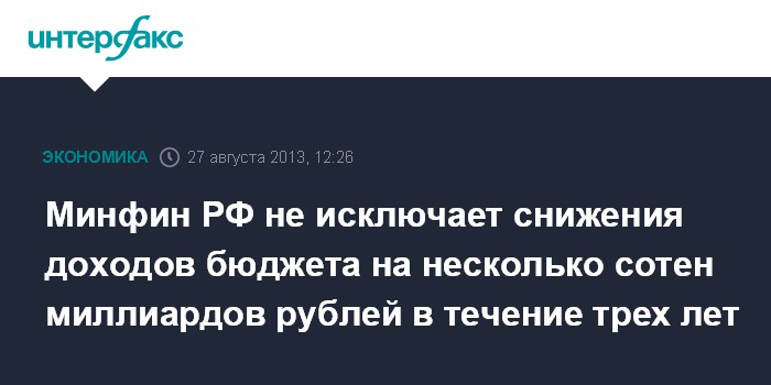 Минфин РФ не исключает снижения доходов бюджета на несколько сотен миллиардов рублей в течение трех лет