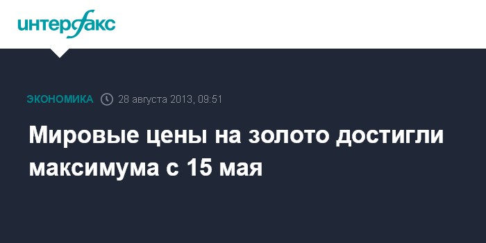 Сингапур. 28 августа. INTERFAX.RU - Мировые цены на золото с немедленной поставкой повысились в среду на бирже в Сингапуре к 09:16 мск на 1% - до $1428,48 за тройскую унцию, что является максимумом с 15 мая 2013 года, сообщает агентство Bloomberg.