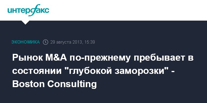 Рынок M&A по-прежнему пребывает в состоянии "глубокой заморозки" - Boston Consulting