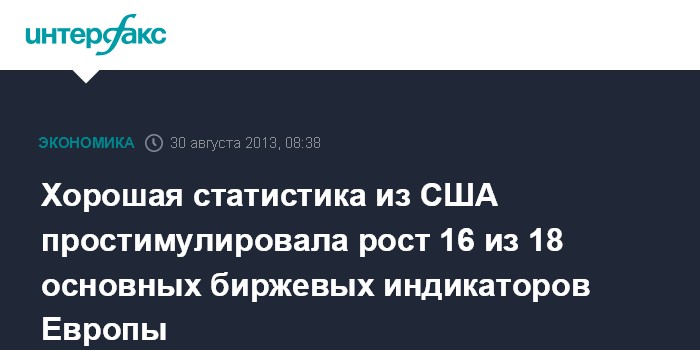 Хорошая статистика из США простимулировала рост 16 из 18 основных биржевых индикаторов Европы