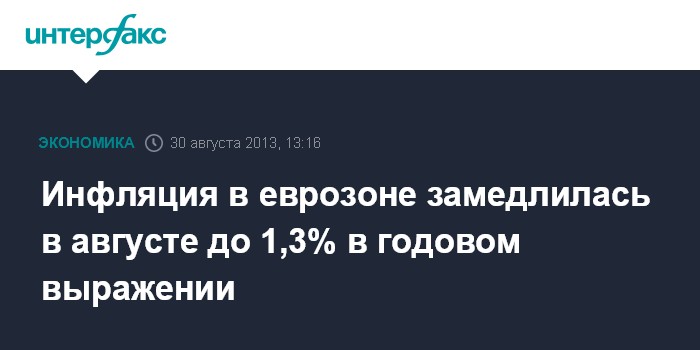 Инфляция в еврозоне замедлилась в августе до 1,3% в годовом выражении