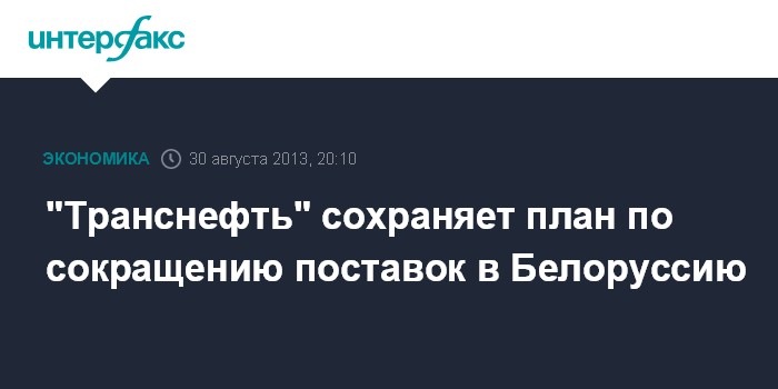 Москва. 30 августа. INTERFAX.RU- "Транснефть" получила обращение "Роснефти" по вопросу сохранения объема поставок нефти в Белоруссию, но не собирается менять планы по сокращению транспортировки нефти в сентябре, сообщил Агентству нефтяной информации (АНИ) вице-президент трубопроводной монополии Михаил Барков.