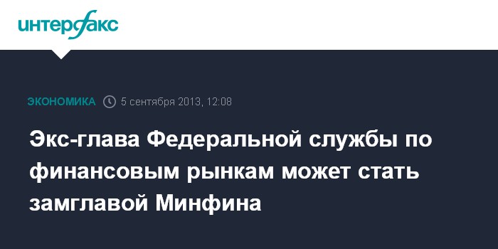 Экс-глава Федеральной службы по финансовым рынкам может стать замглавой Минфина
