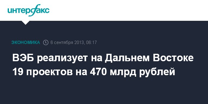 ВЭБ реализует на Дальнем Востоке 19 проектов на 470 млрд рублей