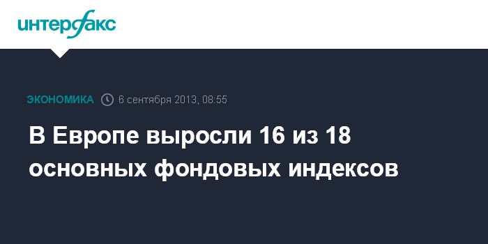 В Европе выросли 16 из 18 основных фондовых индексов