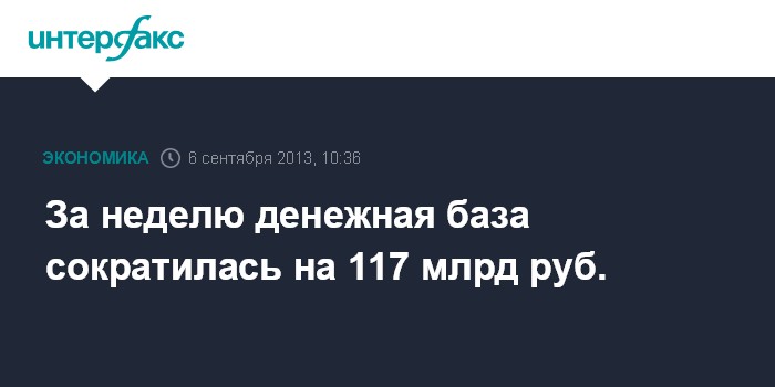 6 сентября. FINMARKET.RU - Объем денежной базы в узком определении на 2 сентября 2013 года составил 7796,5 млрд рублей против 7913,5 млрд рублей на 26 августа 2013 года, сообщает департамент внешних и общественных связей Банка России.