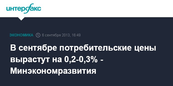 В сентябре потребительские цены вырастут на 0,2-0,3% - Минэкономразвития