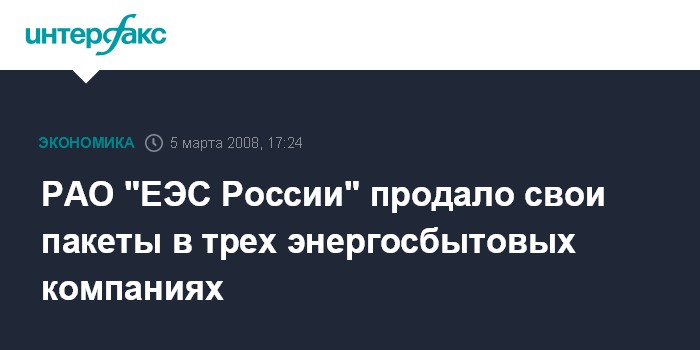 РАО "ЕЭС России" продало свои пакеты в трех энергосбытовых компаниях