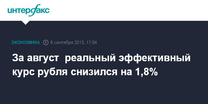 6 сентября. FINMARKET.RU - За август 2013 года реальный эффективный курс рубля к иностранным валютам сократился на 1,8%, к доллару - на 0,8%, к евро - упал на 225. Об этом свидетельствуют опубликованные предварительные данные ЦБ РФ.
