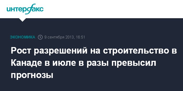 9 сентября. FINMARKET.RU - Разрешения на строительство в Канаде в июле 2013 года выросли по сравнению с июнем на 20,7% - до 7,993 млрд канадских долларов, свидетельствуют данные Статистического управления страны.