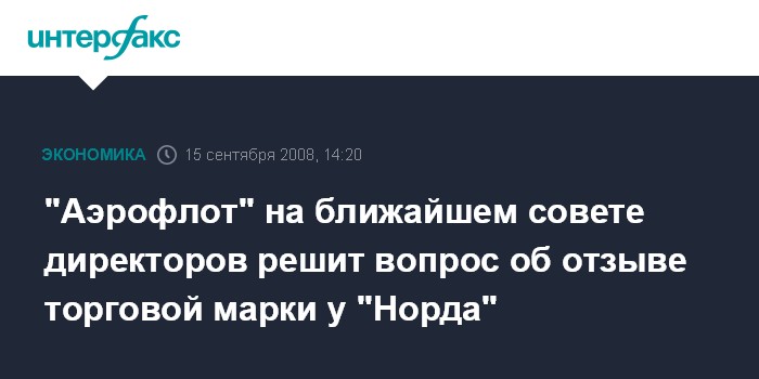 "Все права на использование бренда "Аэрофлот" принадлежат ОАО "Аэрофлот - российские авиалинии". Процедуры по отзыву марки у "Аэрофлот-Норда" будут проведены в соответствии с российским законодательством - сначала вопрос будет вынесен на обсуждение совета директоров компании", - сказал он.