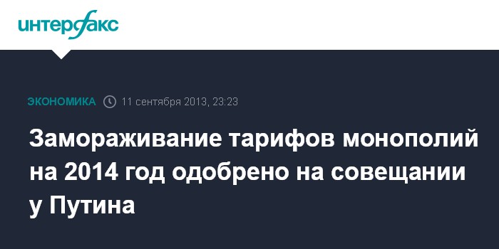 Замораживание тарифов монополий на 2014 год одобрено на совещании у Путина