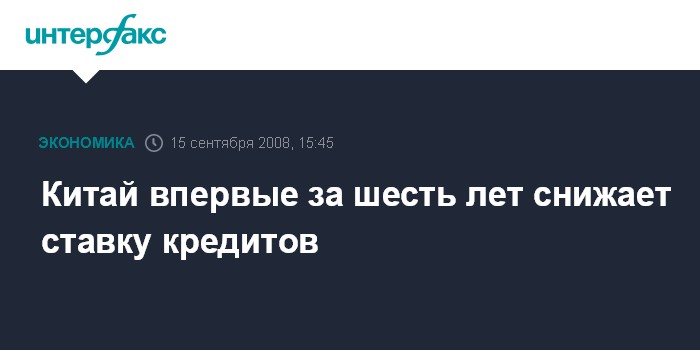 Москва. 15 сентября. INTERFAX.RU – Китайский центробанк снижает ставку кредитования на год на 27 базисных пунктов, сообщило агентство Bloomberg.