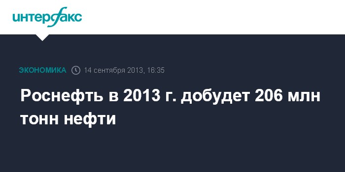 Сочи. 14 сентября. INTERFAX.RU - "Роснефть" планирует, что объем добычи нефти в 2013 г. составит 206 млн тонн, а в следующем - будет больше, заявил глава компании Игорь Сечин.