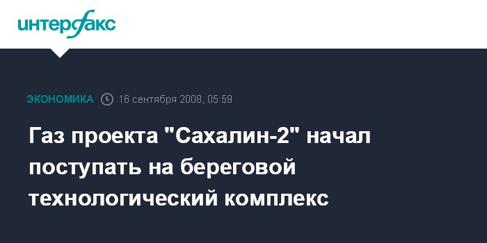 Южно-Сахалинск. 16 сентября. ИНТЕРФАКС-ДАЛЬНИЙ ВОСТОК - На объединенный береговой технологический комплекс (ОБТК) проекта "Сахалин-2" начал поступать природный газ с шельфа Сахалина.
