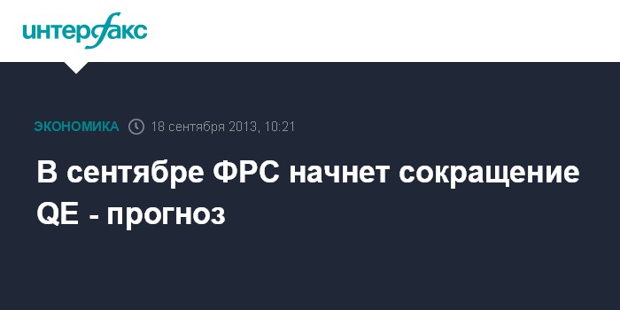 18 сентября. FINMARKET.RU - Федеральная резервная система (ФРС) примет решение о переходе к сворачиванию программы количественного смягчения (QE) на заседании 17-18 сентября, считают большинство экспертов.