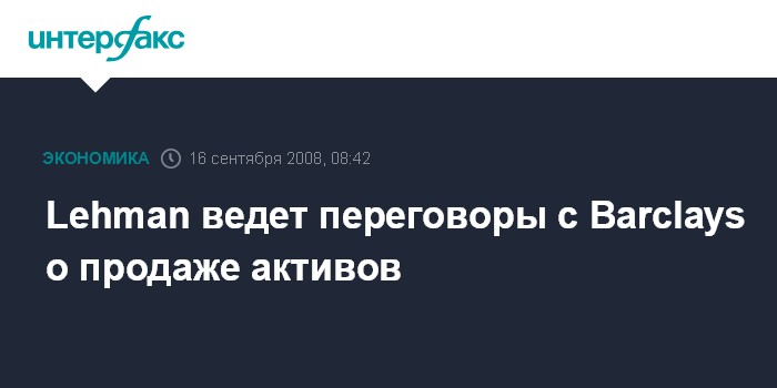 Москва. 16 сентября. INTERFAX.RU - Lehman Brothers в понедельник вел переговоры о продаже основной части своих бизнесов британскому банку Barclays PLC, и есть шансы на достижение соглашения между сторонами уже во вторник, пишет The Wall Street Journal.