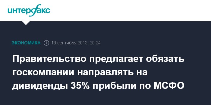 Правительство предлагает обязать госкомпании направлять на дивиденды 35% прибыли по МСФО