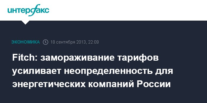 Москва. 18 сентября. INTERFAX.RU- Планы по замораживанию тарифов естественных монополий (включая электросетевые компании) в России в 2014 году свидетельствуют о непредсказуемой регулятивной среде в стране, говорится в сообщении международного рейтингового агентства Fitch Ratings.
