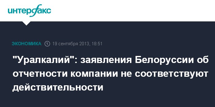 Москва. 19 сентября. INTERFAX.RU - Заявления белорусского руководства относительно текущего состояния компании "Уралкалий" и ее финансовой отчетности не соответствуют действительности, говорится в сообщении компании.