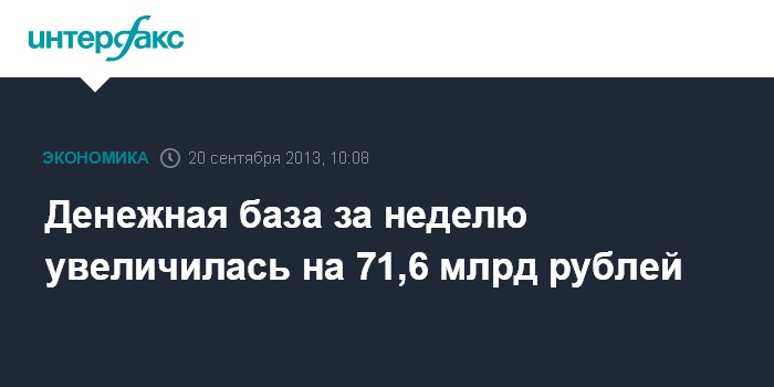 Денежная база за неделю увеличилась на 71,6 млрд рублей
