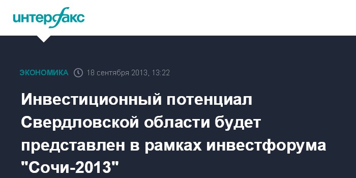Инвестиционный потенциал Свердловской области будет представлен в рамках инвестфорума "Сочи-2013"