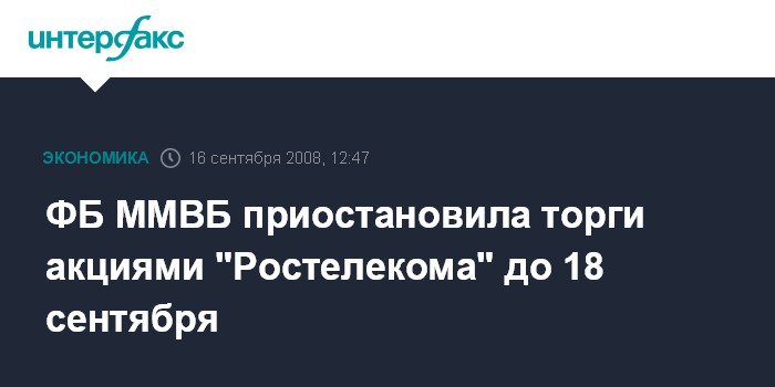 ФБ ММВБ приостановила торги акциями "Ростелекома" до 18 сентября