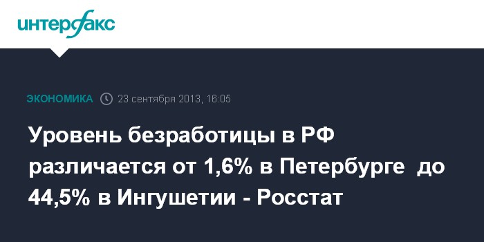 Уровень безработицы в РФ различается от 1,6% в Петербурге до 44,5% в Ингушетии - Росстат