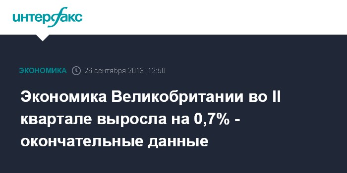 26 сентября. FINMARKET.RU - Оценка роста ВВП Великобритании во втором квартале 2013 года по сравнению с предыдущими тремя месяцами была оставлена на уровне 0,7%, свидетельствуют окончательные данные Национального статистического управления (ONS).