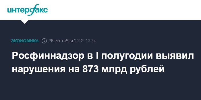 Росфиннадзор в I полугодии выявил нарушения на 873 млрд рублей