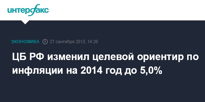 ЦБ РФ изменил целевой ориентир по инфляции на 2014 год до 5,0%