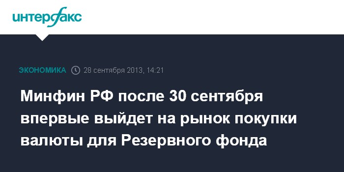 Минфин РФ после 30 сентября впервые выйдет на рынок покупки валюты для Резервного фонда