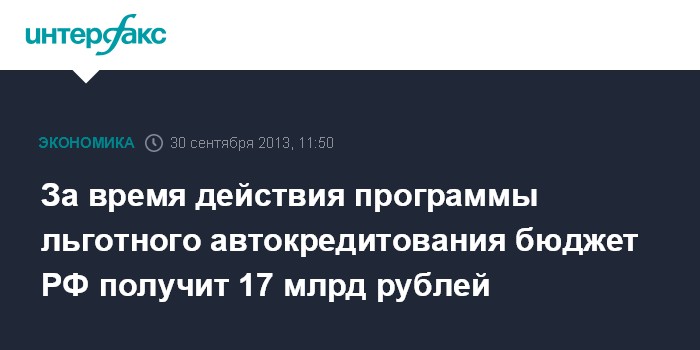 За время действия программы льготного автокредитования бюджет РФ получит 17 млрд рублей