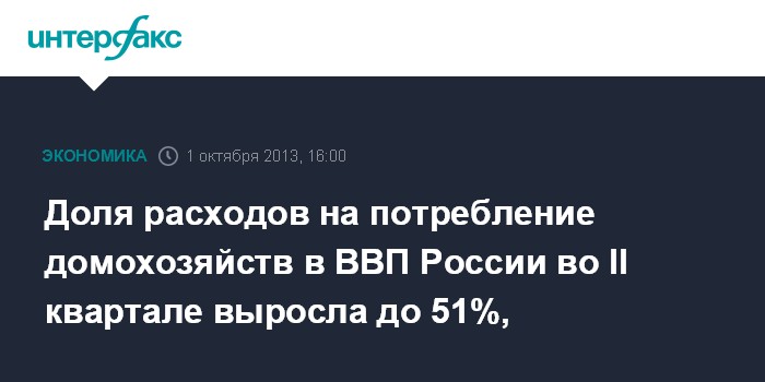 Доля расходов на потребление домохозяйств в ВВП России во II квартале выросла до 51%,
