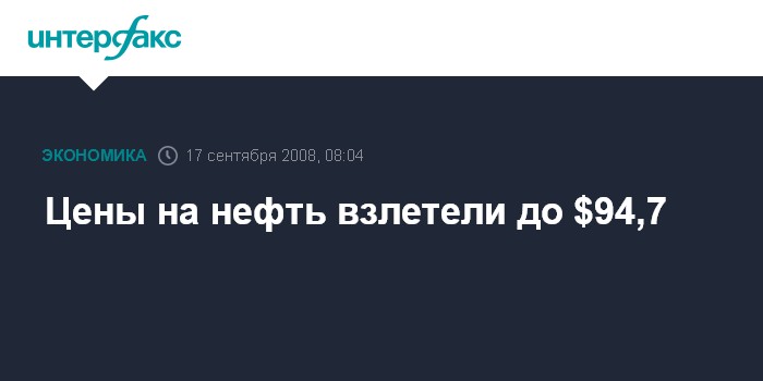 Москва. 17 сентября. INTERFAX.RU - Цены фьючерсов на нефть марки WTI выросли в среду на 3,9% - до $94,72 после объявления плана спасения крупнейшей мировой страховой компании AIG, сообщает агентство Bloomberg.