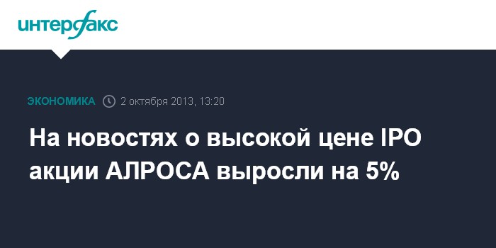 Москва. 2 октября. INTERFAX.RU - Акции АЛРОСА, подогретые утром в среду новостями о намерении провести публичное размещение бумаг, ускорили рост на известиях о высокой цене IPO.