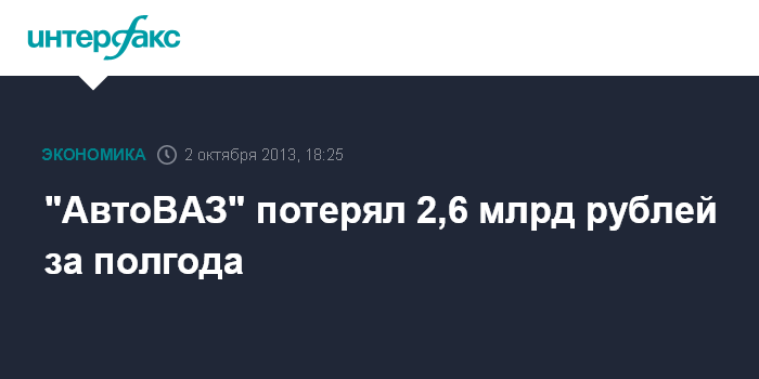 Москва. 2 октября. INTERFAX.RU - ОАО "АвтоВАЗ" в I полугодии 2013 г. получило чистый убыток по МСФО в 2,618 млрд рублей против 27,394 млрд рублей чистой прибыли годом ранее, следует из отчета компании по МСФО.