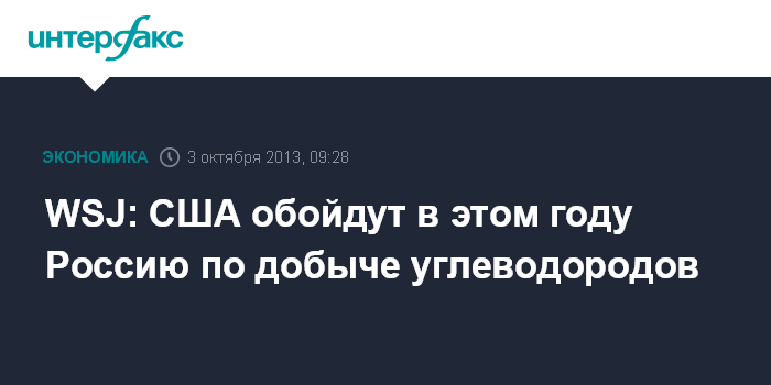 Москва. 3 октября. INTERFAX.RU - США, учитывая имеющие место тенденции, в этом году должны обойти Россию по объемам добычи нефти и газа, выйдя по этому показателю на первое место в мире, пишет Wall Street Journal со ссылкой на статистику.