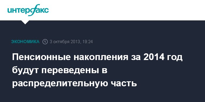 Пенсионные накопления за 2014 год будут переведены в распределительную часть