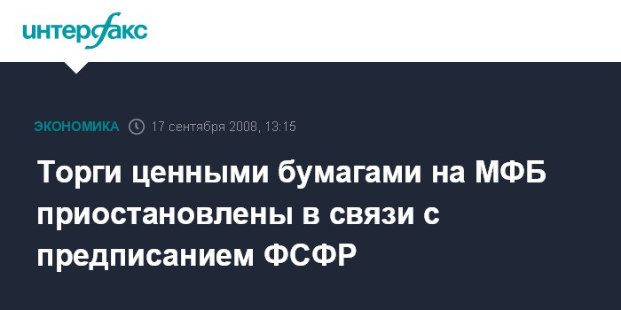 Торги ценными бумагами на МФБ приостановлены в связи с предписанием ФСФР