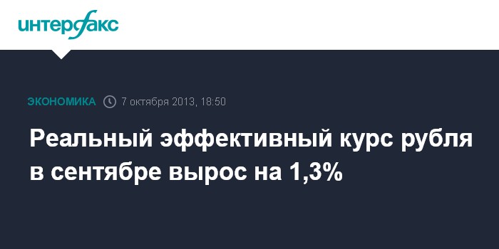 Москва. 7 октября. INTERFAX.RU - Реальный эффективный курс рубля к корзине валют государств - основных торговых партнеров России в сентябре вырос на 1,3%, по предварительной оценке ЦБ, опубликованной на его сайте.
