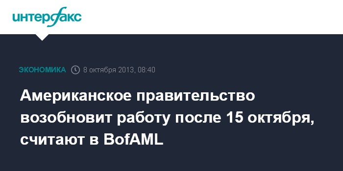 Американское правительство возобновит работу после 15 октября, считают в BofAML
