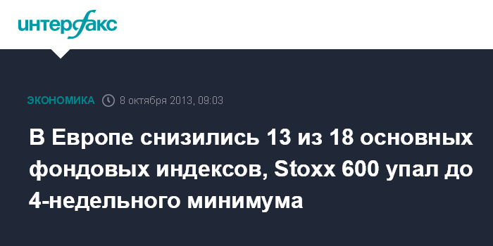 Сводный индекс крупнейших предприятий Европы Stoxx Europe 600 потерял 0,23% и составил 309,18 пункта, что является минимальным уровнем за последние четыре недели.