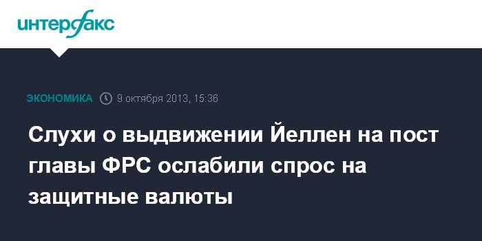 Слухи о выдвижении Йеллен на пост главы ФРС ослабили спрос на защитные валюты