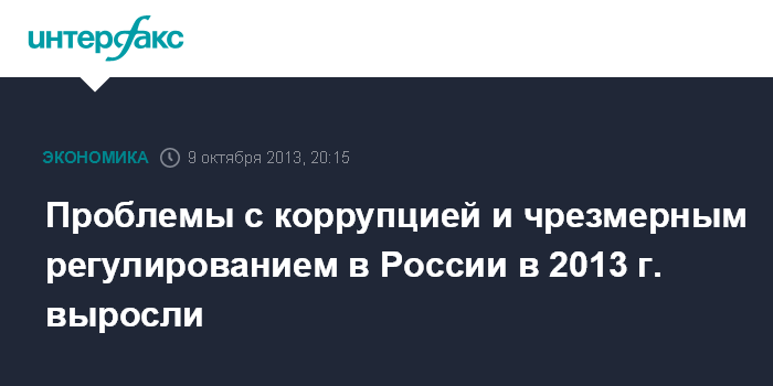 Проблемы с коррупцией и чрезмерным регулированием в России в 2013 г. выросли